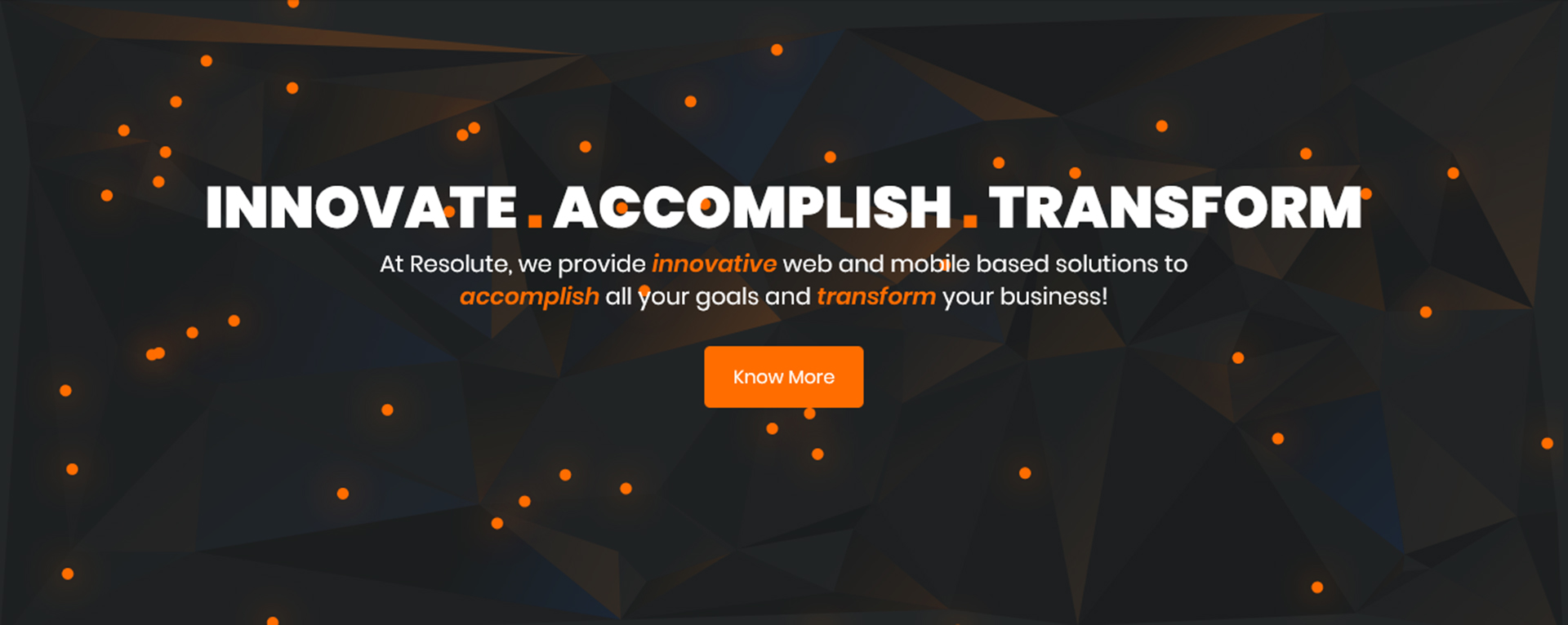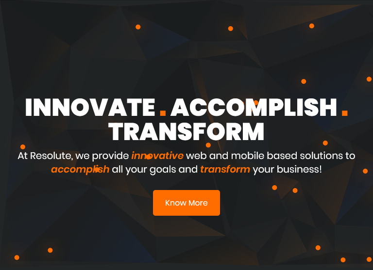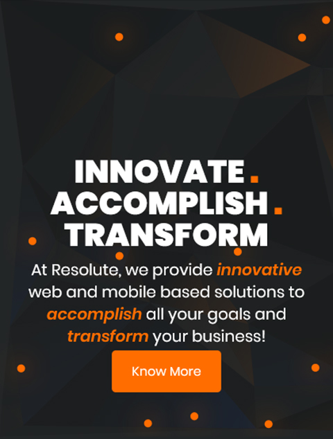 We, at Resolute, are a team of talented and energetic young geeks specializing in the fields of design, creativity, web applications, mobile applications and enterprise solutions. We are industry agnostic and can cater to all types of businesses ranging from startups to big companies. Profound tech knowledge coupled with business understanding is what allows us to create unique solutions that give more power to more clients. We do what we are best at and take pride in helping businesses reach to the next level.